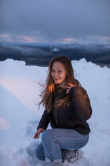 We were heading up to Timberline when everyone else was coming down. She was praying Jesus would get us up the icy hill and I was just like, "With prayers like that I probably should feel nervous for my life, but I don't whatsoever, I trust you implicitly, you got this." And so she did, haha it was fine. The patchwork of sunset over the valley was... breathtaking. Mostly cloudy but wisps of pink shining through on select clouds. A gentle blue twilight settling in.